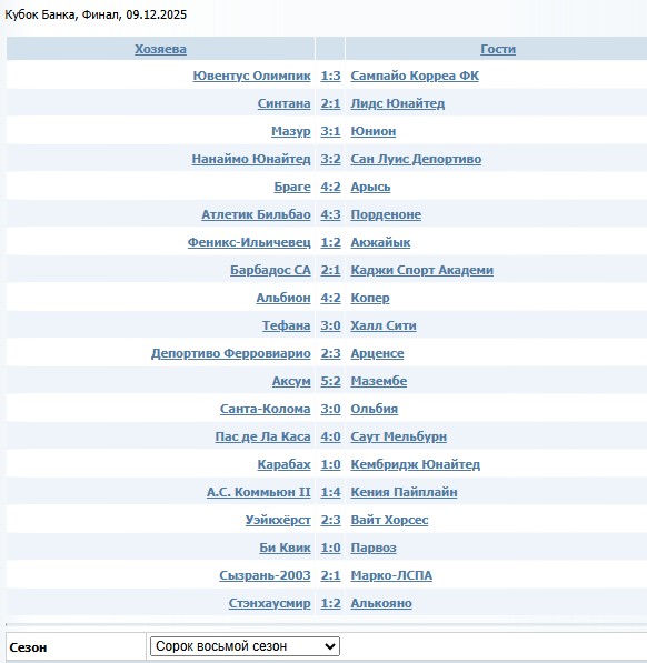 Эти Футсоюзы и являются «царями горы» 48 сезона в Кубке Банка!