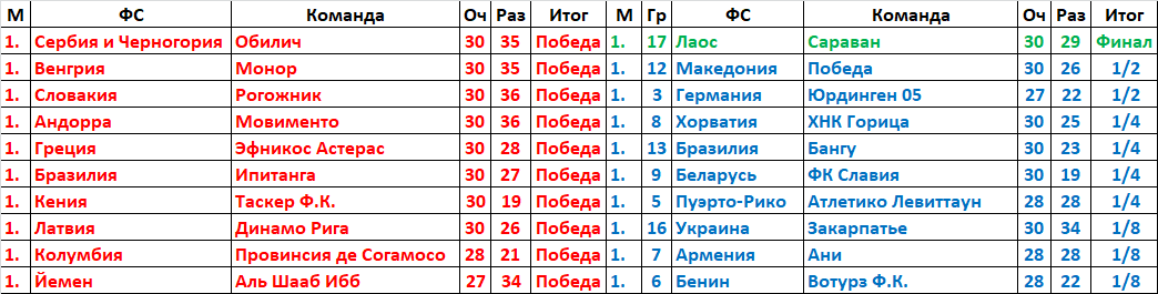 Так кто же эти счастливчики, победители обеих турниров и начнем с победителей групповых раундов в обоих Кубках.
