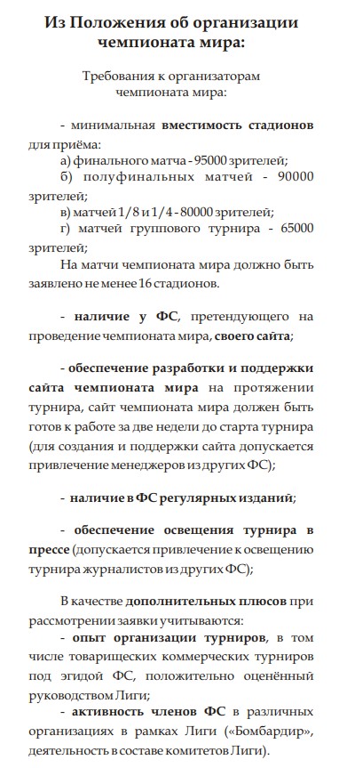 Тогда за право принять у себя такой праздник футбола, как Чемпионат Мира, решили побороться шесть Футсоюзов, от которых поступило 5 заявок!