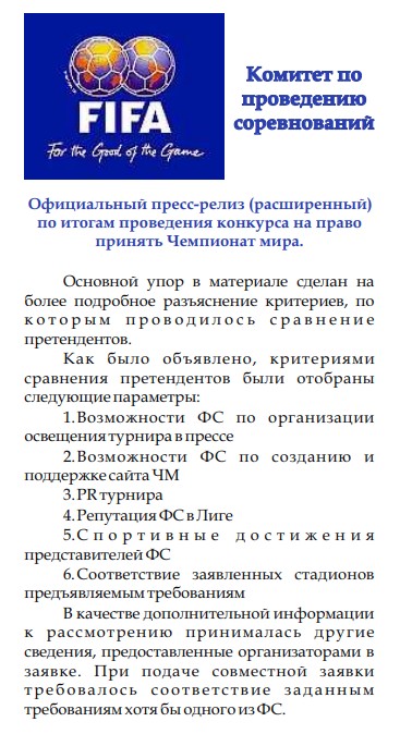 Ну что же, как видите даже почти 20 лет тому назад именно журналистика на проекте «Золотая Бутса», была, по сути, определяющим фактором при определении Футсоюза, которому предоставлялось почетное право проведения Чемпионата Мира!