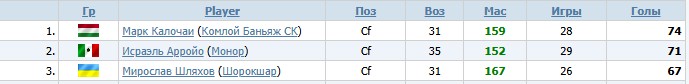 Как видите, возглавляет бомбардирскую гонку именно венгерский нападающий Марк Калочаи, наколотивший уже 74 гола!