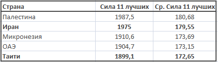 Кто меньше потеряет в играх с другими соперниками, тот и поедет на мировое первенство. Возможно, это будет представитель «малочисленных» наций – Иран, но что уже точно более вероятно, им не будет Таити. Все-таки достаточно большая разница в мастерстве «11 лучших» между этими сборными – почти 7 баллов.