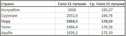 Стоит отметить и сборную Перу, которая на американском континенте (зоне) занимает достойное 14-е место среди 35 стран. Среднее мастерство «11 лучших», равное 178,59 баллов, должно вселять надежду перуанцам как минимум на звание претендента на выход в финальный раунд Чемпионата мира 50 –го сезона.